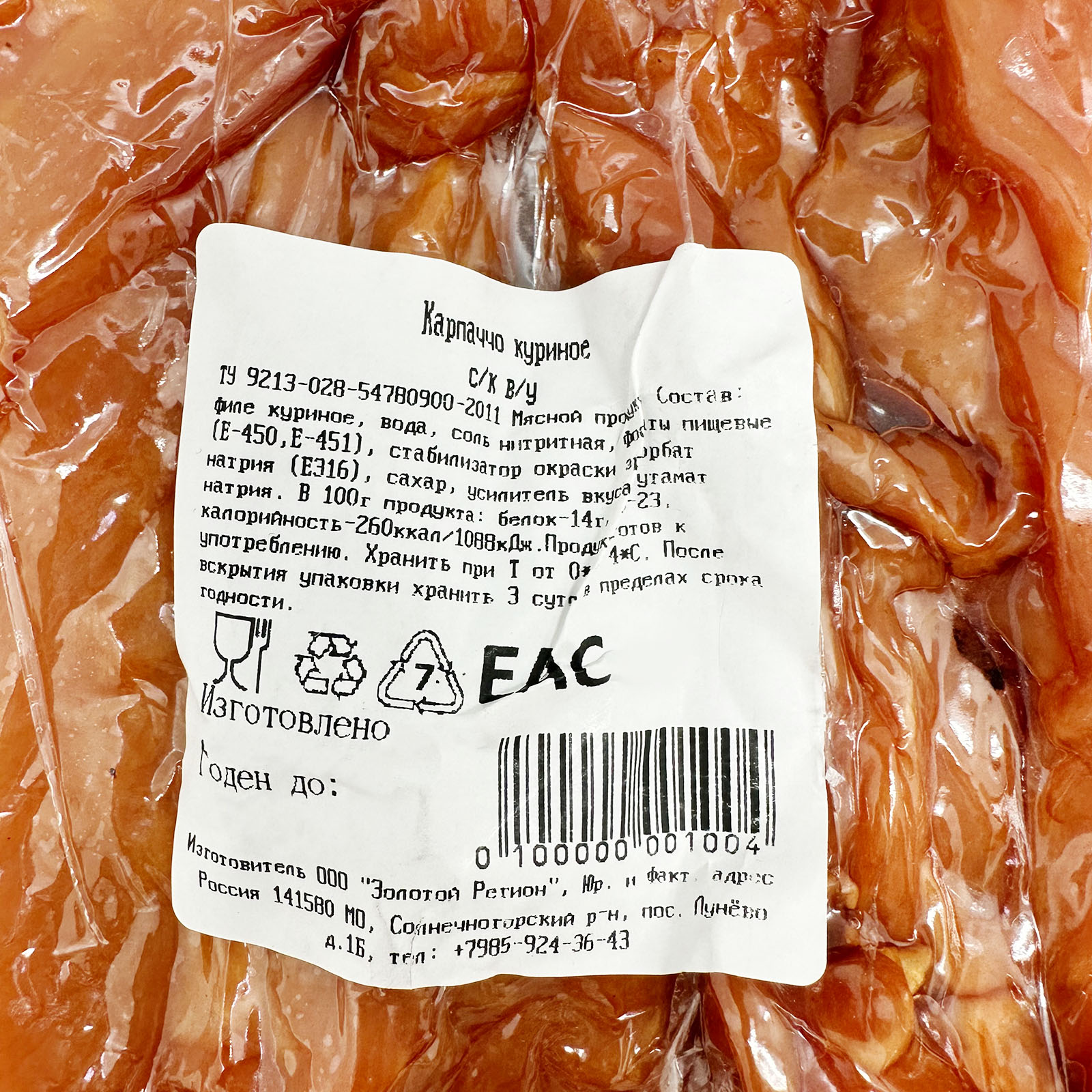 Карпаччо из мяса птицы сырокопченое в вакууме /ЗОЛОТОЙ РЕГИОН ТМ/