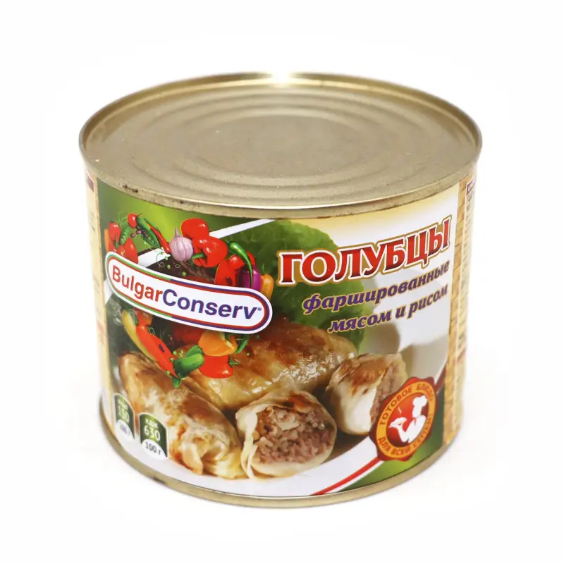 Голубцы фаршированные мясом с рисом 44%мяса жест/банка 540 г /БУЛГАРКОНСЕРВ ТМ/