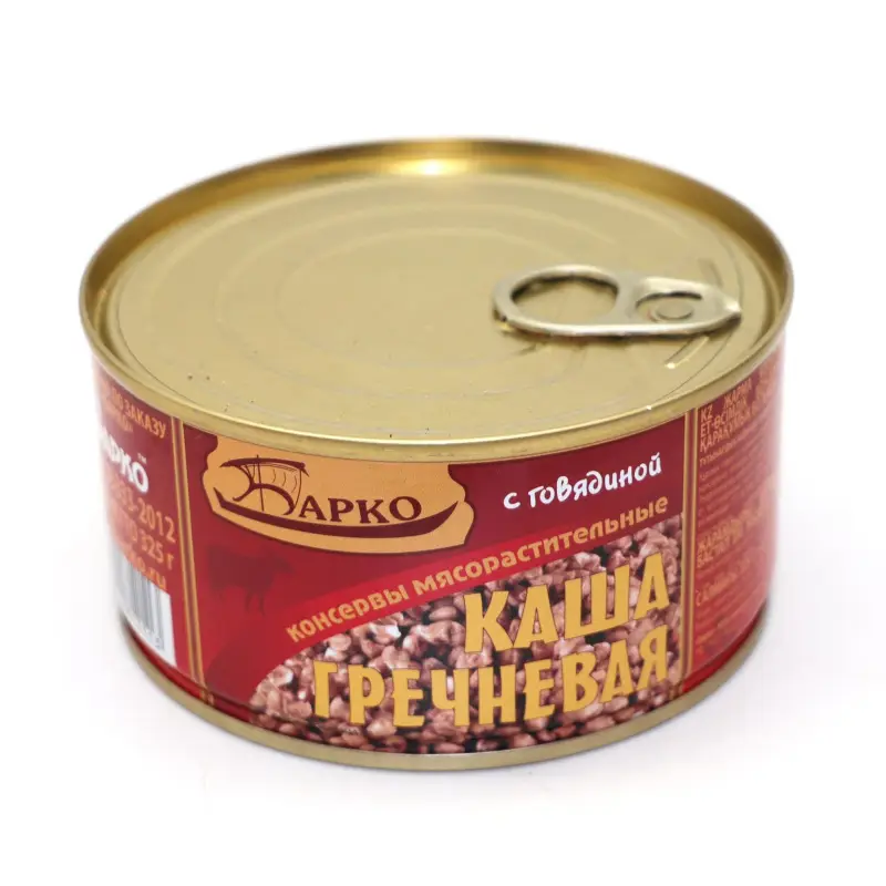 Каша гречневая с говядиной в жестяной банке 325 гр /БАРКО ТМ/