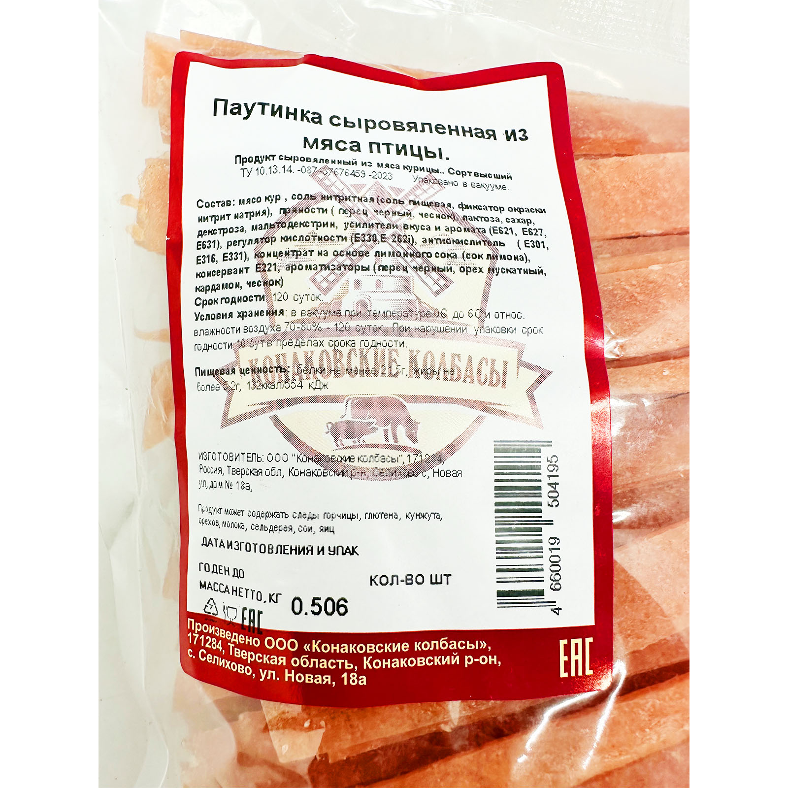Паутинка из мяса птицы сырокопченая в вакууме /КОНАКОВСКИЕ КОЛБАСЫ МК/