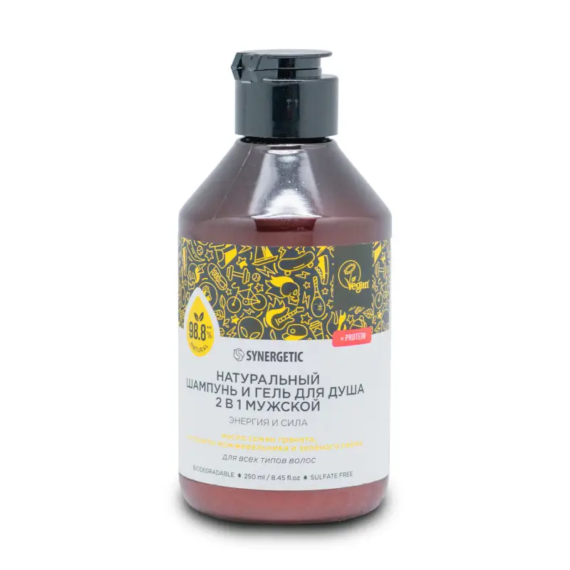 Шампунь и гель для душа 2 в1 Энергия и сила 250 мл /СИНЕРГЕТИК ТМ/