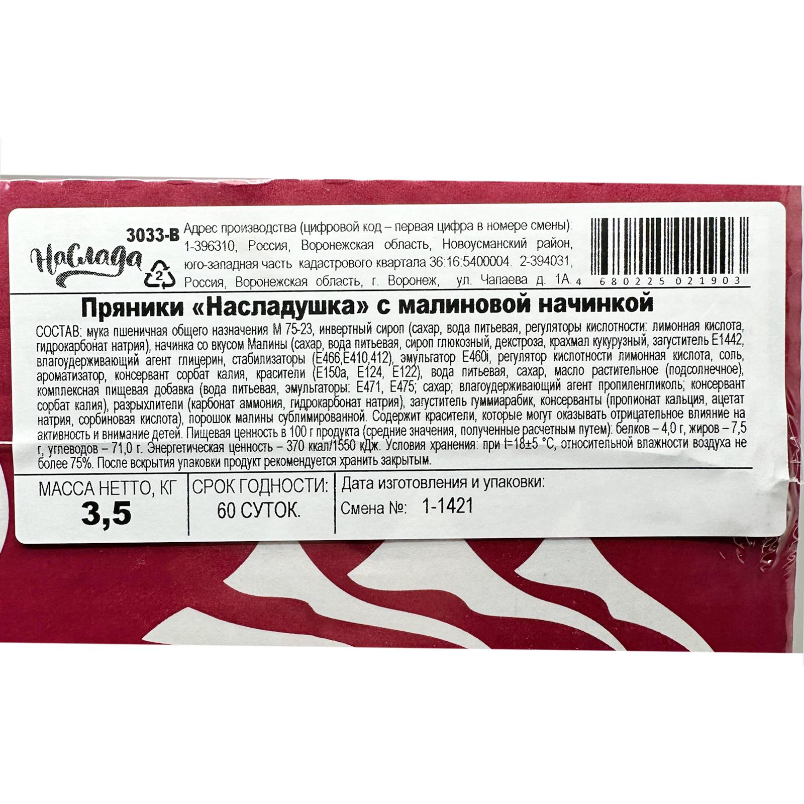 Насладушка с малиновой начинкой пряники вес/СЛАД ГОСТИНЦЫ ТМ/