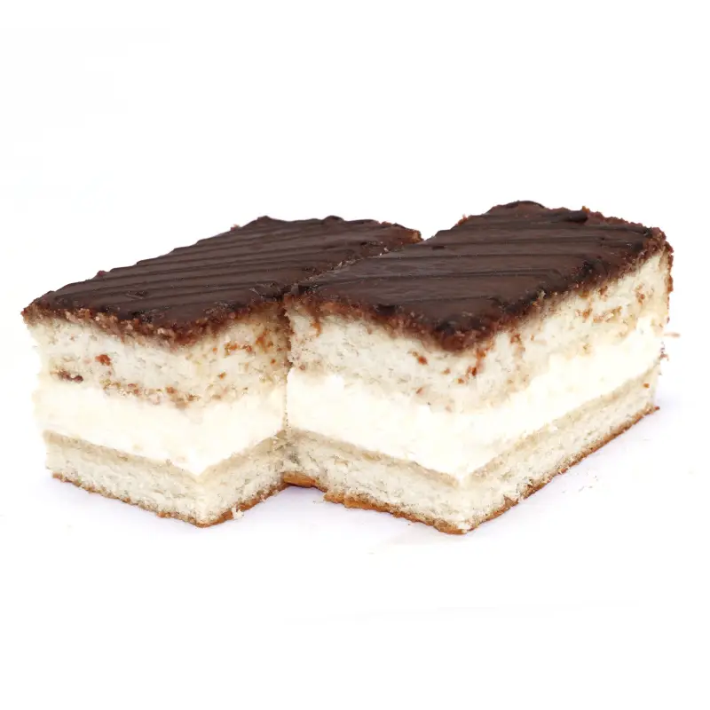 Мука пшеничная, вода питьевая, сахар-песок, яйцо куриное, паста для взбивания, сорбат калия, начинка: сгущеное молоко, сорбат калия, паста для взбивания, ванилин, сироп, глазурь какао (помадка)