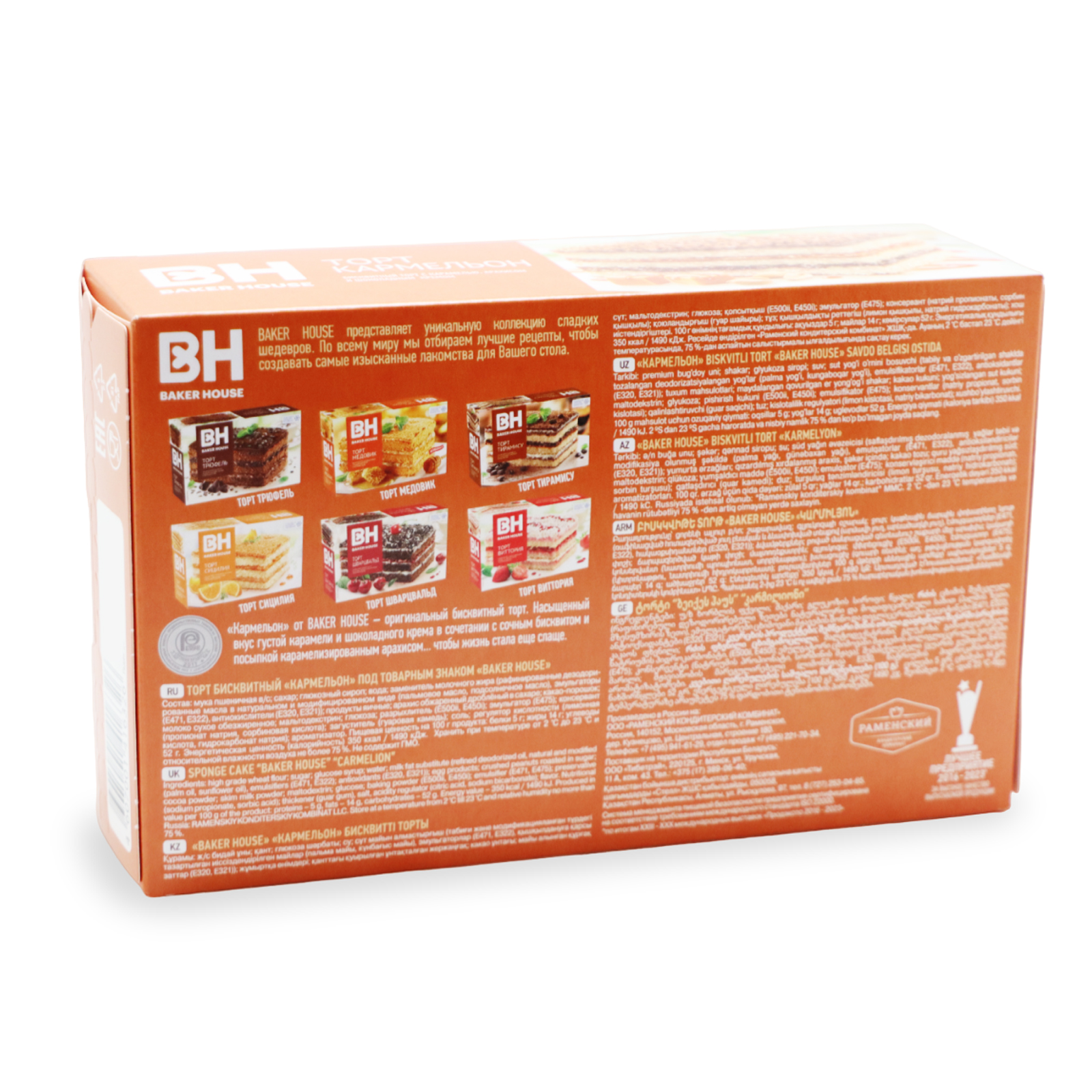 Торт бисквитный трехслойный Карамельон 350 гр /РАМЕНСКИЙ КК/ BAKER HOUSE ТМ/