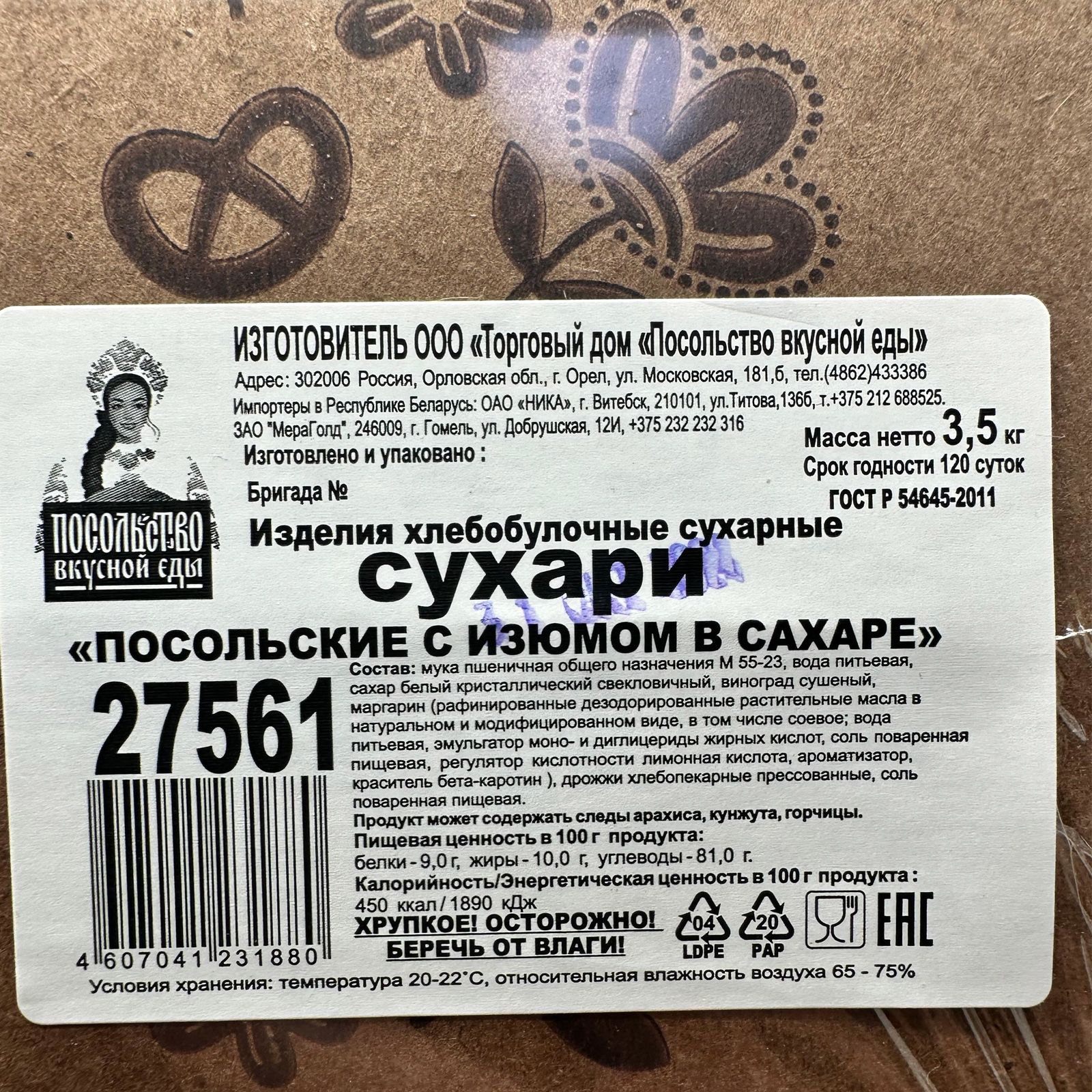 Сухари с изюмом и сахаром Посольские вес /ПОСОЛЬСТВО ВКУСНОЙ ЕДЫ ТД/