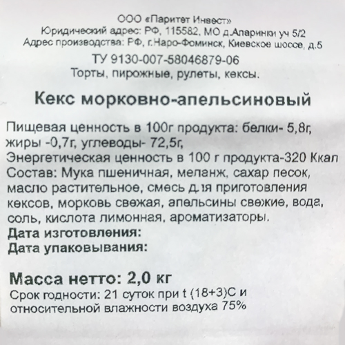 Кекс Морковно-Апельсиновый весовой /КОРОЛЬ СЛАДОСТЕЙ/