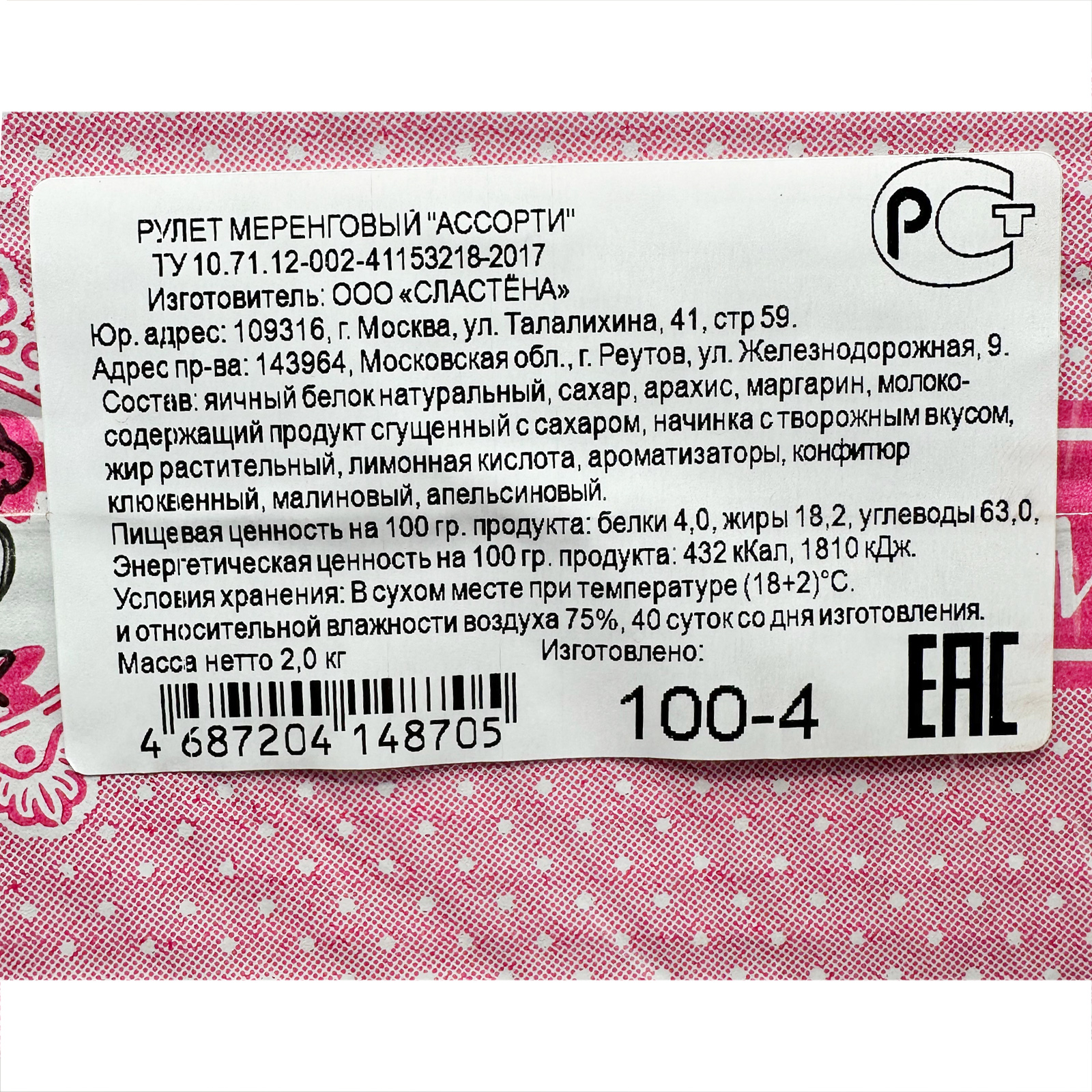 Рулет Меренговый ассорти (сгущенка,апельсин,клюква) безе вес /ДАМАМ ТМ/