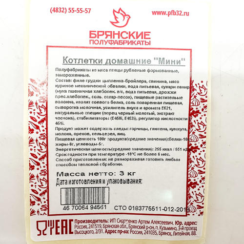 Котлеты Домашние мини /БРЯНСКИЕ ПФ/