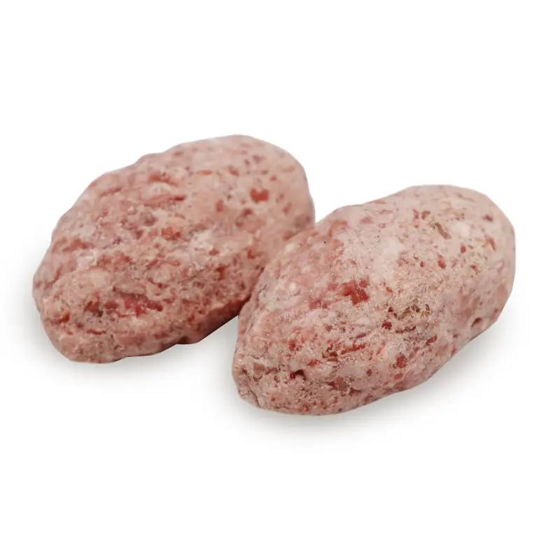 Свинина, говядина, вода питьевая, лук репчатый, соль поваренная пищевая, мука соевая, пищевые растительные волокна, сухари панировочные (мука пшеничная хлебопекарная, вода питьевая, дрожжи пресованные хлебопекарные, соль, сахар-песок), стабилизатор Е450, усилитель вкуса и аромата Е621, агент антислеживающий Е551, мальтодекстрин, крахмал картофельный, антиокислитель Е315, загуститель Е415.