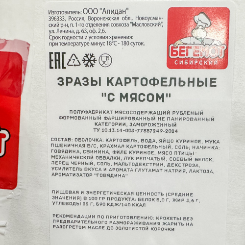 Зразы Картофельные с мясом вес /АЛИДАН ТМ/
