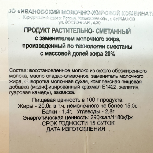 Сметана 20% Иваново сзмж в ведре 3кг /КЕФИР-ГРУПП ТМ/