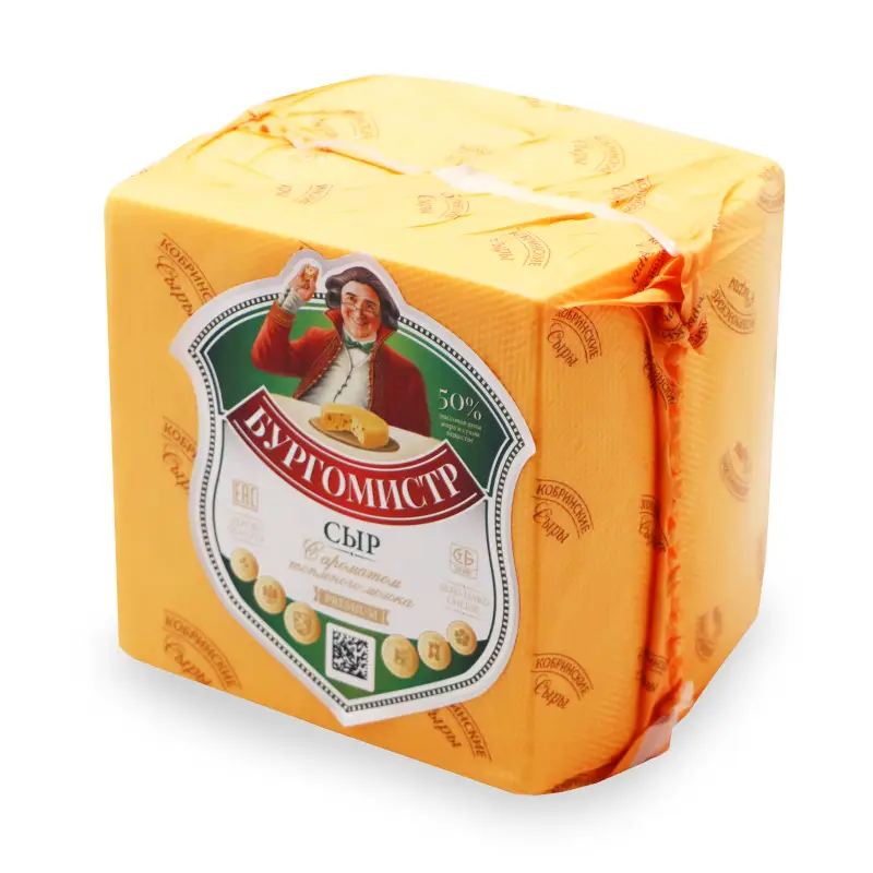 Сыр Бургомистр с ароматом топленого молока 50% кубик бзмж /КОБРИНСКИЙ МСЗ/ БЕЛАРУСЬ/
